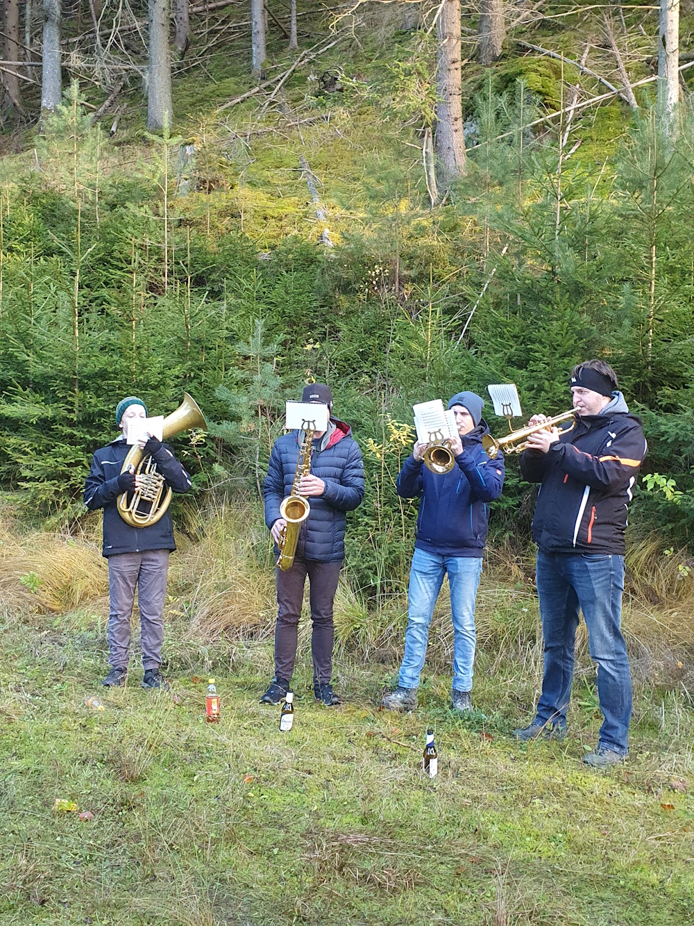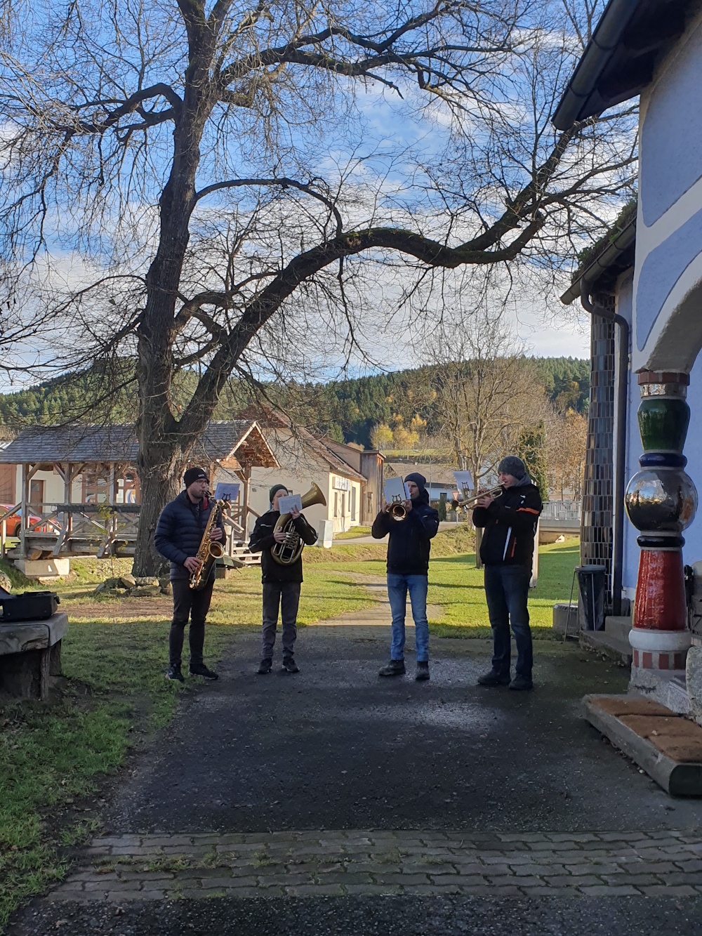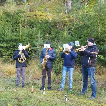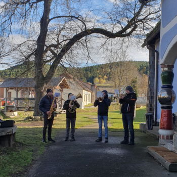 Wie geplant trafen sich die vielen Wanderer um 14:30 etwas unterhalb vom 3-Gemeinden-Eck bei der Labstelle. Die Versorgung der Wanderschar übernahm der Kameradschaftsbund Großgöttfritz, die vielen Helfer sorgten schnell für Speis und Trank. Vom windigen Wetter war im Kamptal nichts zu spüren, windgeschützt stand dem geselligen Beisammensein nichts im Wege. Für die musikalische Umrahmung sorgte eine Bläsergruppe des Musikvereins Rappottenstein.