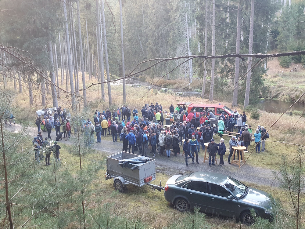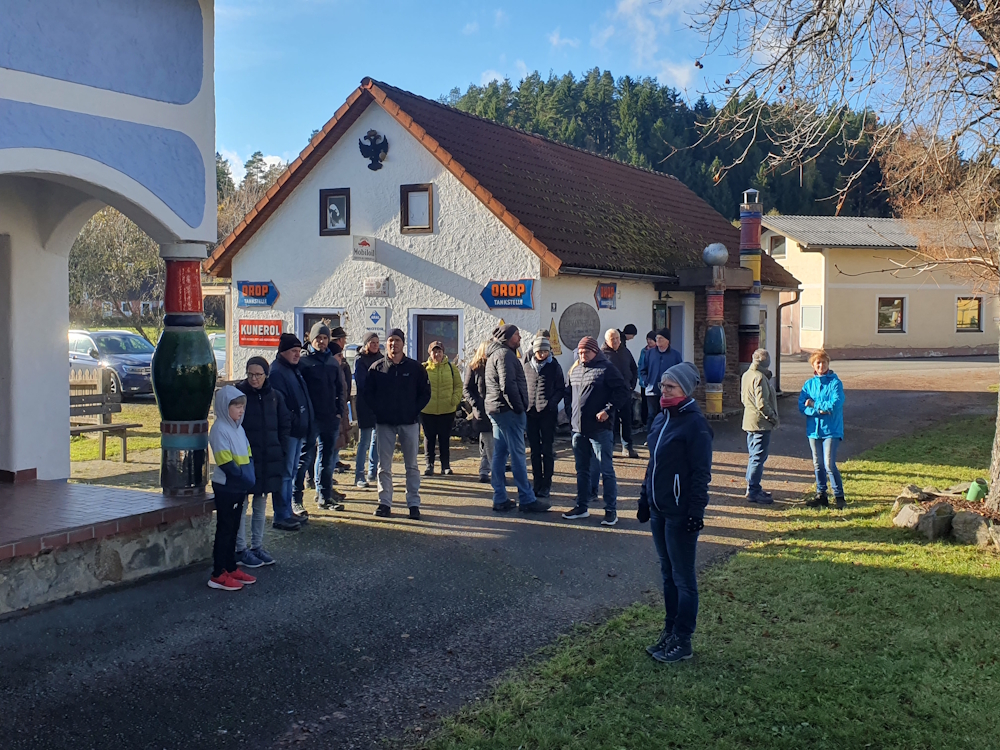 Bei schönem, herbstlichem Wetter machten sich Wanderer aus den 3 Gemeinden auf den Weg um pünktlich um 14:30 beim Treffpunkt im Kamptal zu sein. Auf Hundertwassers Spuren, dem Wanderweg 55a wanderte die Gruppe aus Zwettl vorbei an der Hahnsäge, seinem ehemaligem Wohnhaus, Richtung Treffpunkt. Die größte Gruppe kam aus Großgöttfritz und startete in Großweißenbach Richtung Kamptal. Den wohl kürzesten Weg, hatten die Wanderer aus der Gemeinde Rappottenstein, die beim Dorfmuseum Ihre Wanderung begannen.